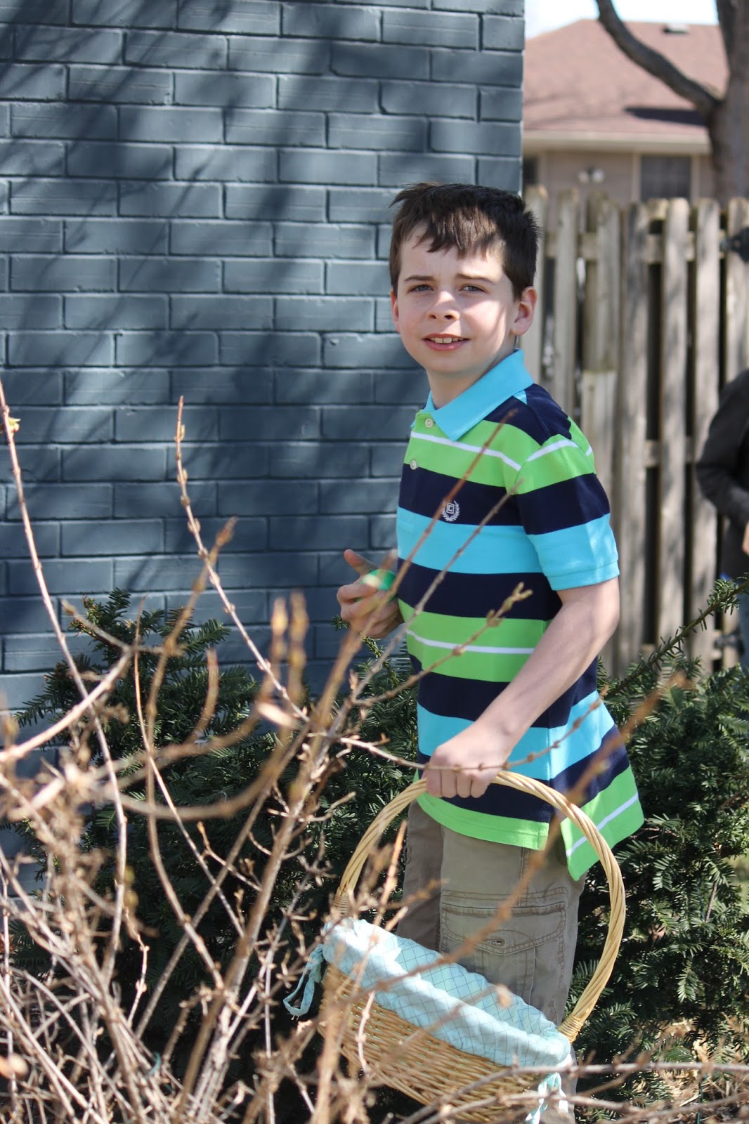 We had a fun weekend with Easter. Saturday the boys were able to go to Gramma's church for an egg hunt. It was cold and rainy which cancelled baseball and they all were able to go. Grayson and Declan found so many eggs they had so much fun. Liam was so nice that as he was collecting eggs he was re-hiding them for some of the kids who didn't have as many.